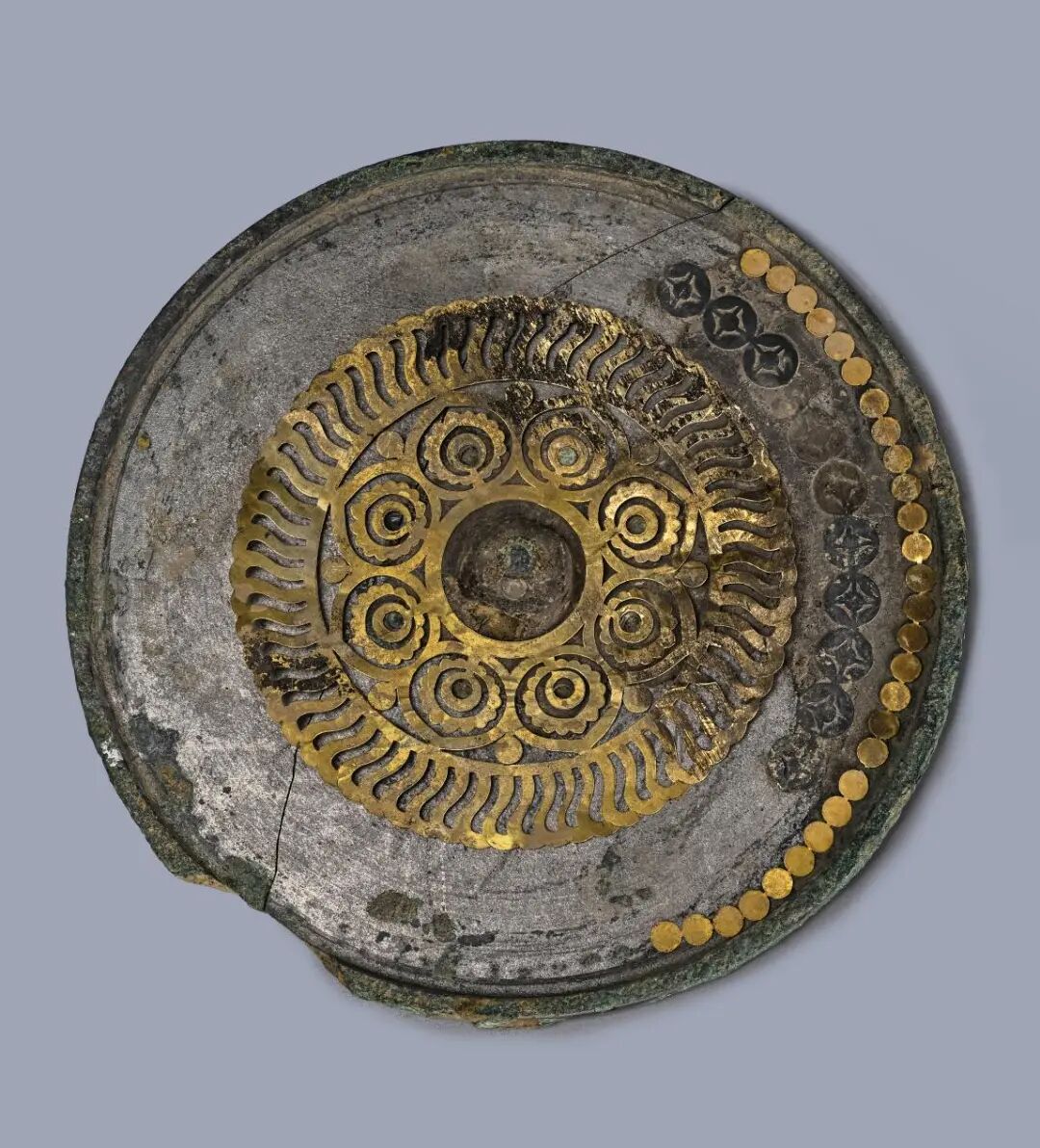 董韶容墓出土的金银平脱镜。陕西省考古研究院供图