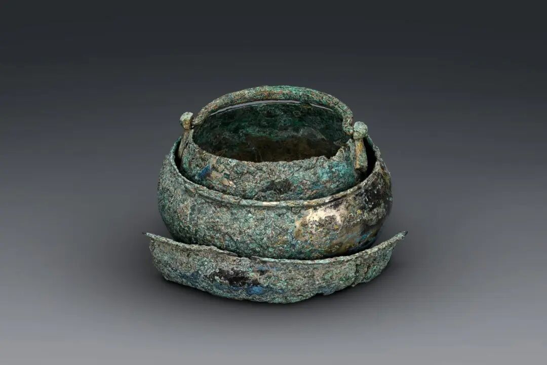 董韶容墓出土的铜提梁罐、铜钵、铜盆组合。陕西省考古研究院供图