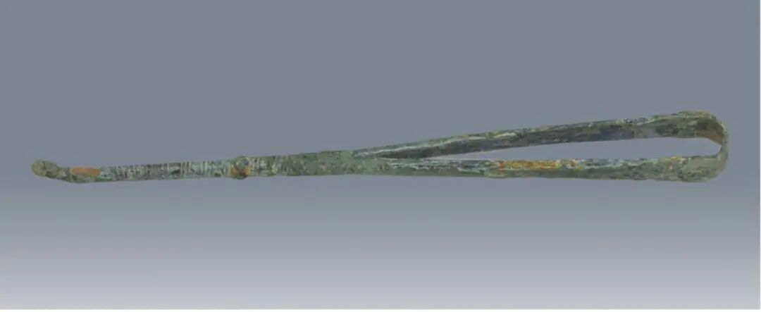 董韶容墓出土的铜镊。陕西省考古研究院供图